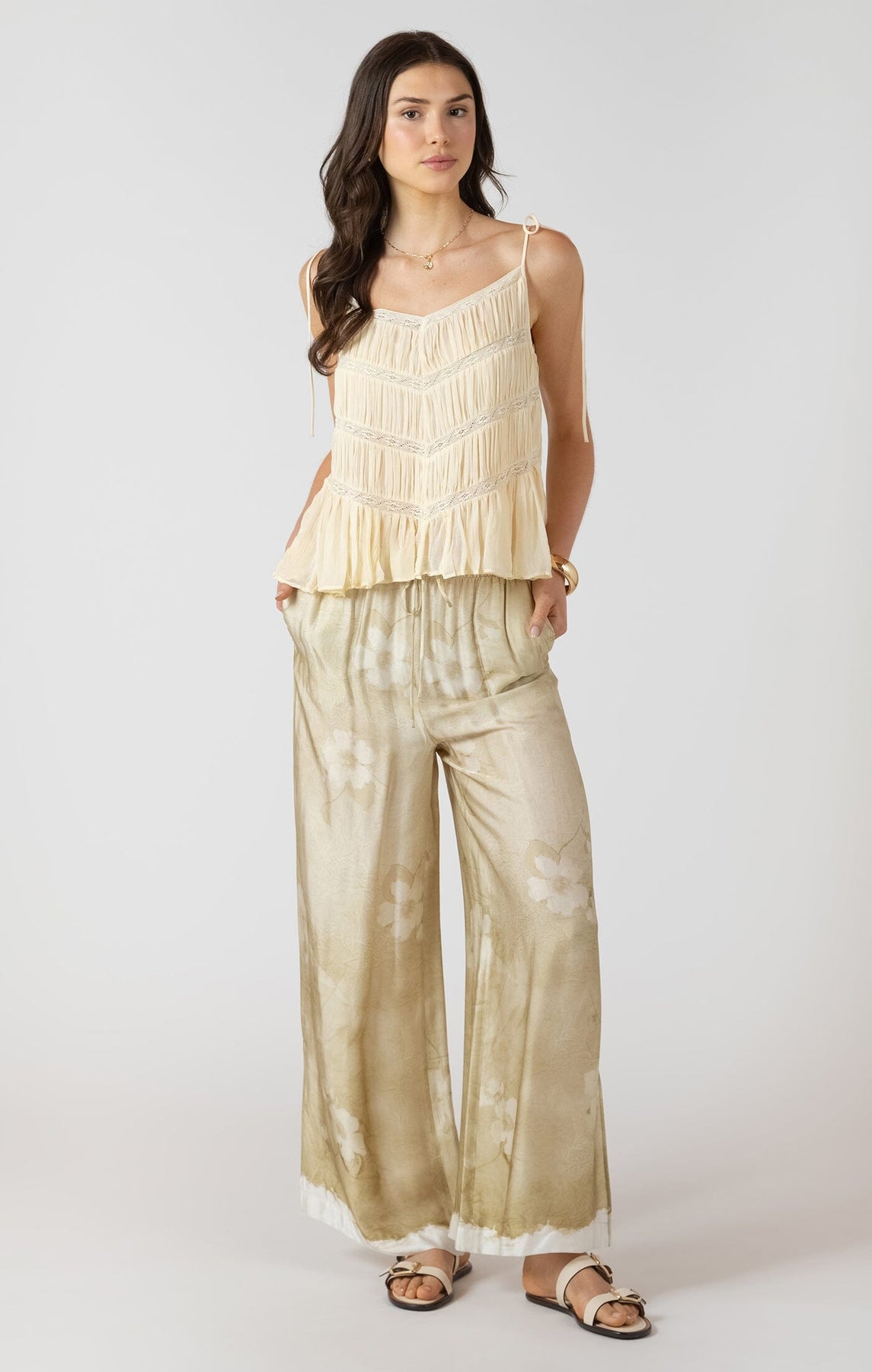 Effortless boho elegance meets everyday comfort in the DASHA TANK. This cream-colored cami features a delicate lace insert at the tie shoulders, adding a touch of romantic detail to a versatile silhouette. Perfect layered or worn solo, it transitions seamlessly from casual days to relaxed evenings. The soft, breathable fabric and thoughtful design make it a wardrobe essential for those who love understated style with character.