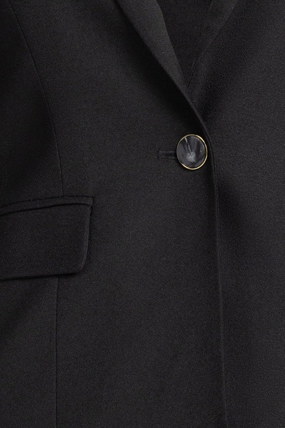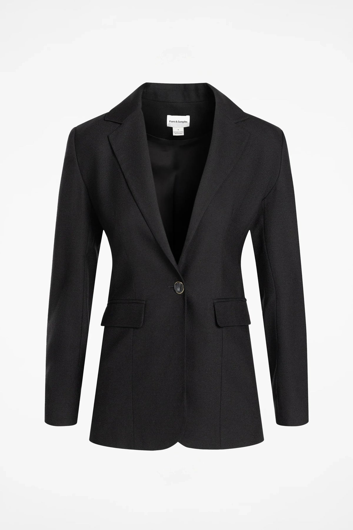 The Calais Tailored Edge Blazer combines a sculpted fit with soft crepe drape. Fully lined, one-button closure and a clean ventless back.